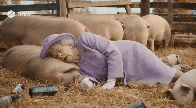 乔任梁的父亲,躺正在猪身上喘着气,